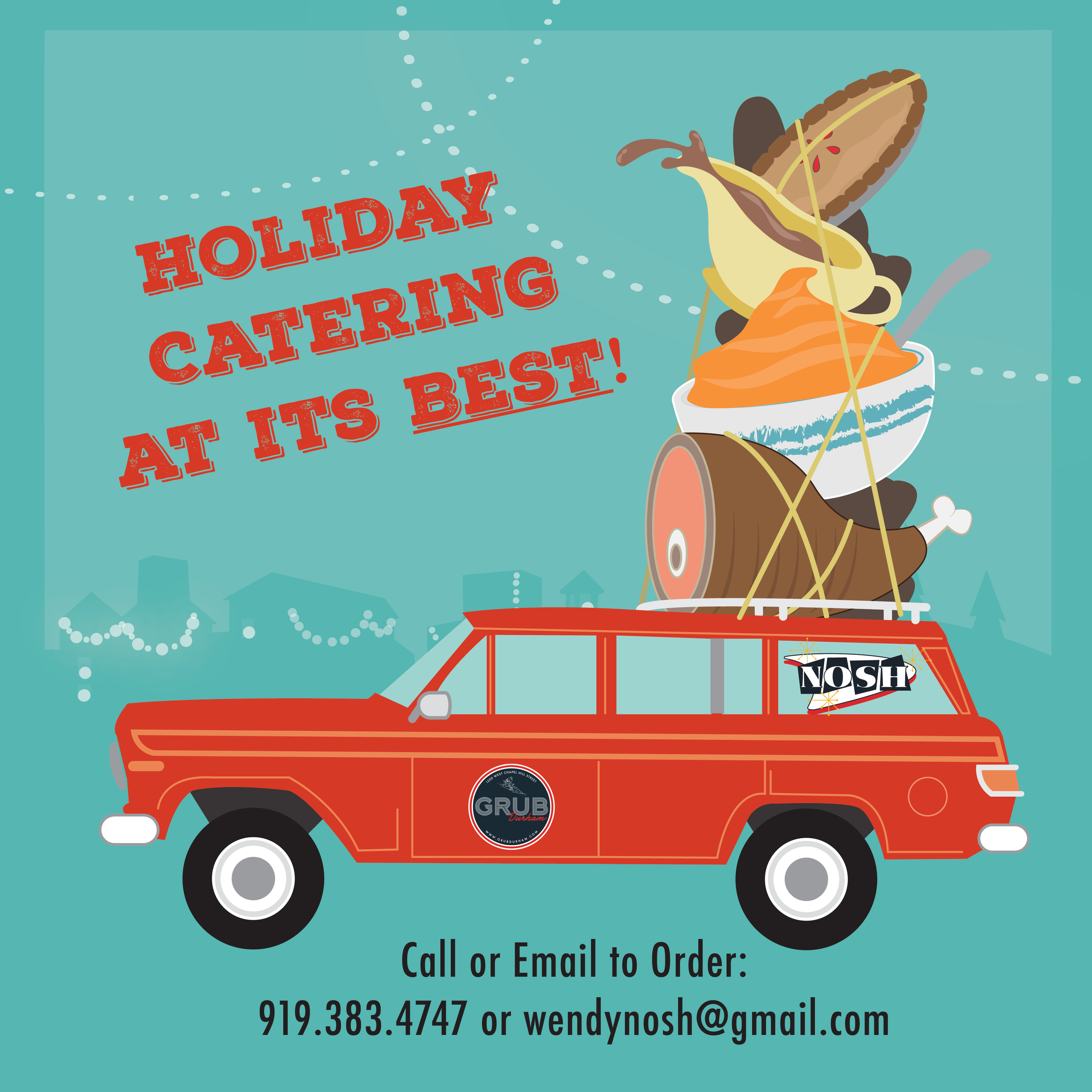 In 2014, Wendy also developed NOSH @ Joe Rae Cafe (Trent Semans Center-Duke Campus), NOSH Sammiches (All over Durham), and GRUB Durham with her partner, Stacey Poston.Wendy is proud to be a part of the Durham community and is dedicated to offering high-quality, affordable food complimented by quick, friendly service.